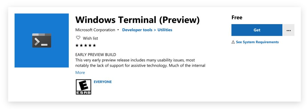 Windows Terminal 早期预览版本已经上架 Microsoft Store。