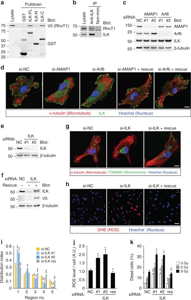 I. 敲除AMAP1、Arf6后,不影响ILK和RhoT1的结合。
