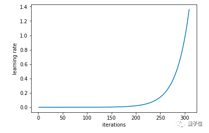 在这种方法中,我们尝试使用较低学习率来训练神经网络,但是在每个批次中以指数形式增加,相应代码如下: