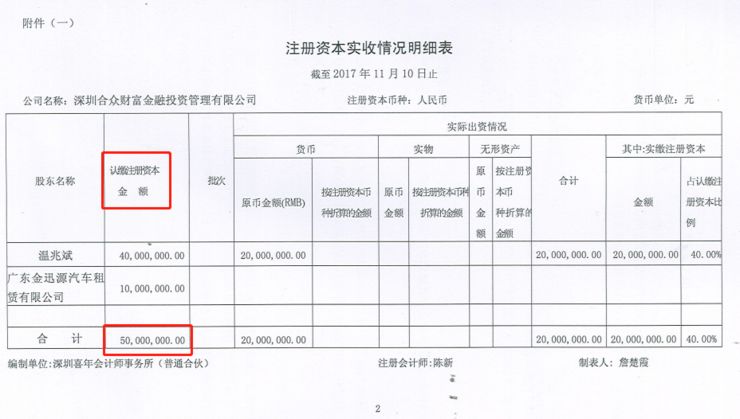 而根据合众e贷官网披露的验资报告来看,目前其注册资本仍为5000万,实缴资本为5000万。