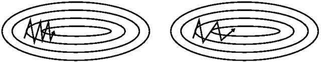 左图——没有动量的 SGD 右图——有动量的 SGD