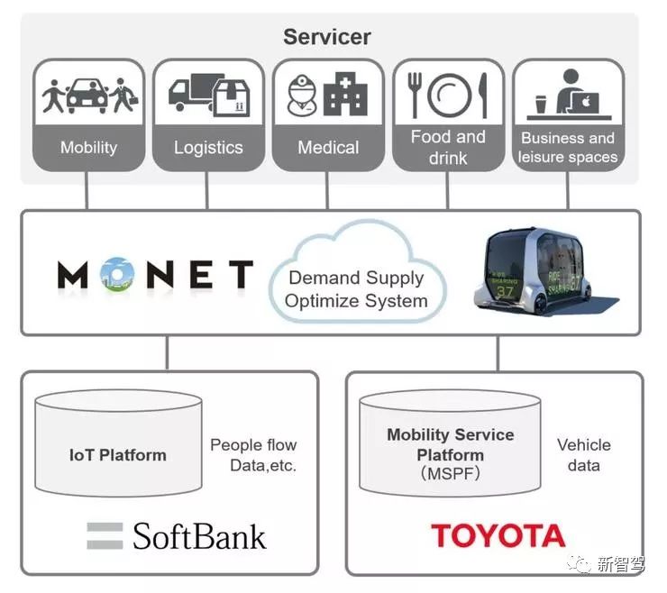 具体业务上,Monet 将软银数据收集分析平台「IoT Platform」和丰田汽车信息平台「Mobility Service Platform(MSPF)」进行结合。