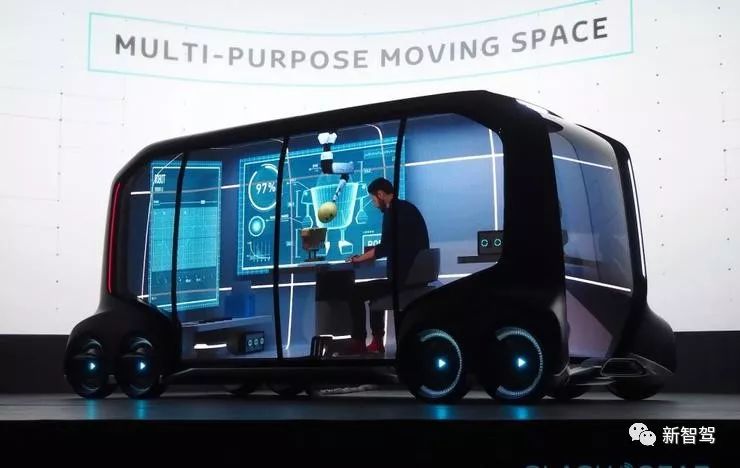 Monet 选择的丰田 e-Palette 是一款全自动驾驶概念车,它拥有 8 个车轮,采用纯电驱动,外形酷似方盒子,可以满足人们工作和生活的需要。