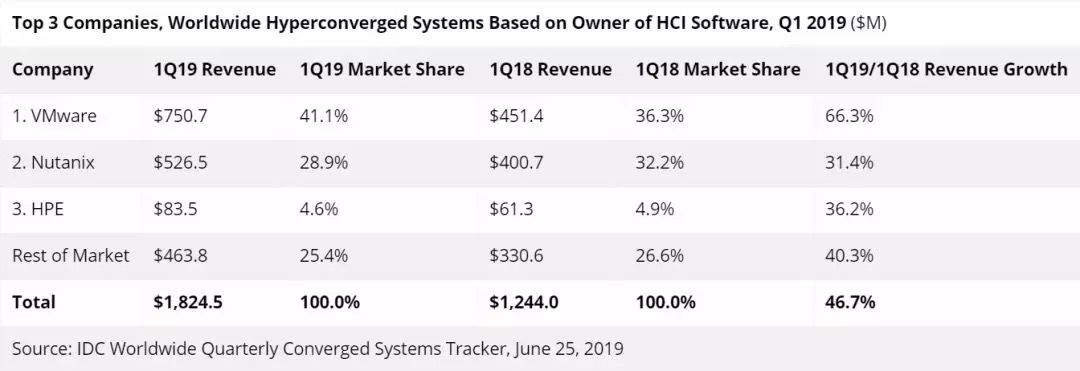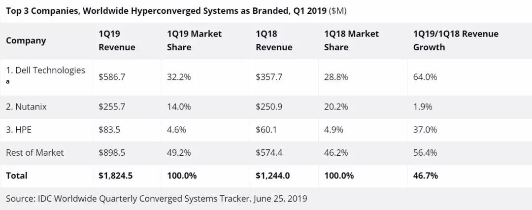 Nutanix获得的品牌收入为2.588亿美元,占该季度整个HCI市场的14.2%。