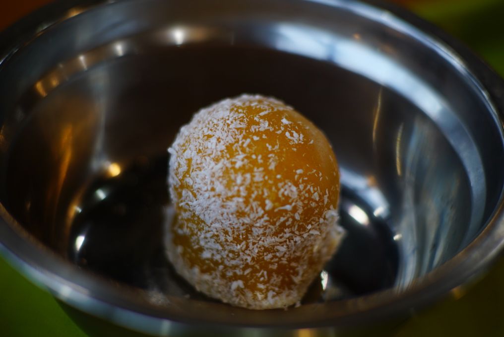 作为插着“4元/份”小旗子的“萌新”,小巧的南瓜月饼成功地在一堆白花花的花卷馒头包子间吸引了我的注意力。矮矮胖胖的身体被椰蓉点缀,可爱精致得让人有些不知从何下口,可是真正咬上一口之后,又顿感失望。吃过苏式月饼、广式月饼等等月饼,都是月饼为什么只有南大月饼如此优(te)秀(bie),灰色的内馅似乎是麦芽糖所做,毫无特点的甜,吃起来有些粘牙,打着“南瓜月饼”的旗号却也没有吃出什么南瓜味,可以放心拔草这一中秋限定了。
