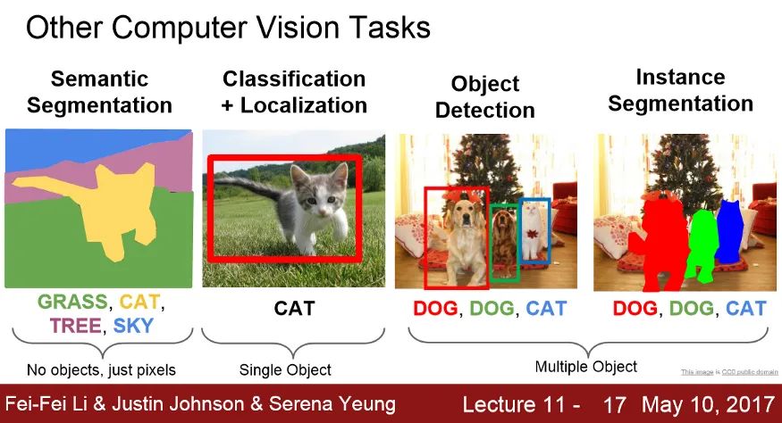 语义分割是计算机视觉的一个问题,我们的任务是使用图像作为输入,为图像中的每个像素分配一个类。在语义分割的情况下,我们不关心是否有同一个类的多个实例(对象),我们只是用它们的类别来标记它们。有多种关于不同计算机视觉问题的介绍课程,但用一张图片可以总结不同的计算机视觉问题: