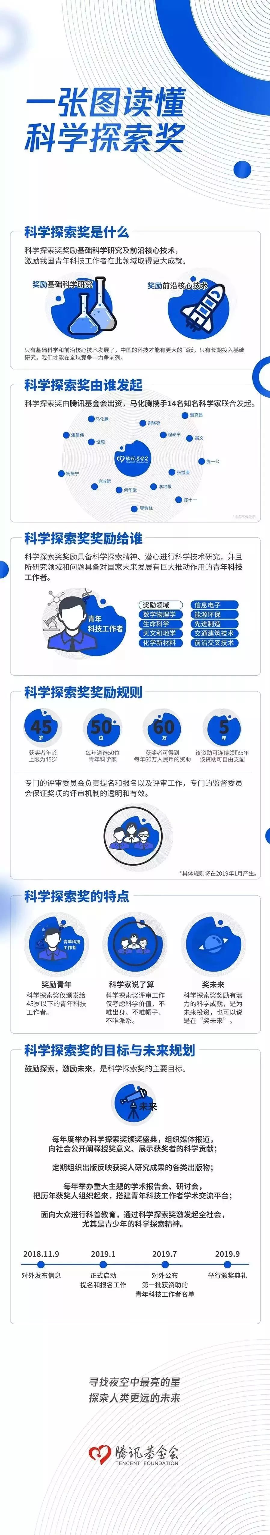 腾讯基金会表示,将陆续对外公布科学探索奖评审规则等更多相关信息,并于明年1月正式启动奖项提名和报名工作。