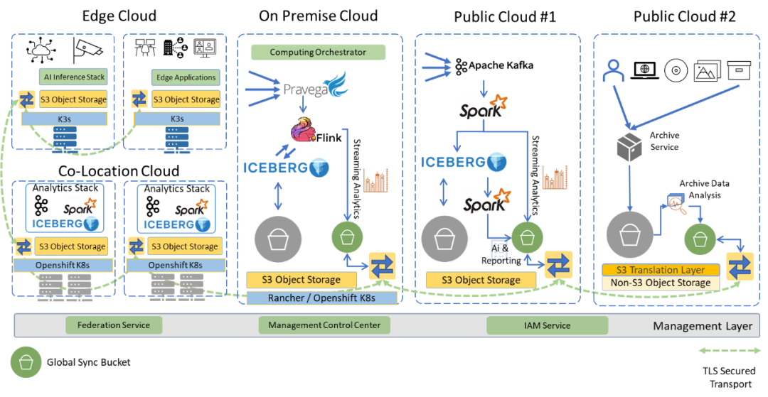 在现实的企业应用中,无状态的计算端可以容易的做到在多云之间进行迁移。而对于有状态的存储端,想要做到灵活可迁移却并不容易,而且它们的管理面、数据面的 API 也各不相同。AWS、Azure 和 Google 都提供了基于 Spark 大数据平台方案,但是在存储层,则基于自家的存储产品给出了不同的方案: