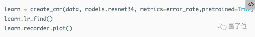 这些数据已经在resnet34上预训练过了,现在只需要直接运行确定最佳学习率。