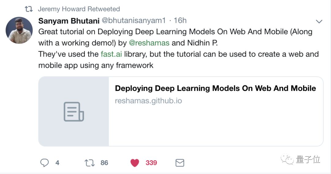 连fast.ai创始人、Kaggle前主席及首席科学家Jeremy Howard都点赞推荐:
