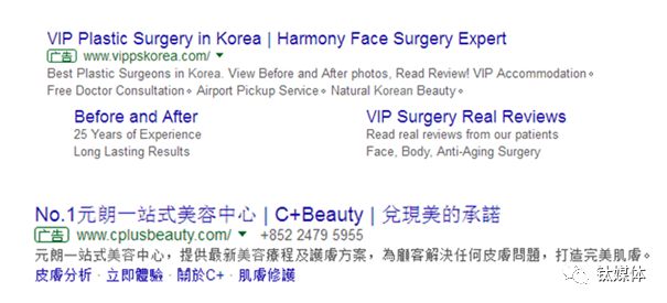 美容整形广告也是谷歌医疗广告中的重要组成部分,在各个地区基本都有相关的广告业务。