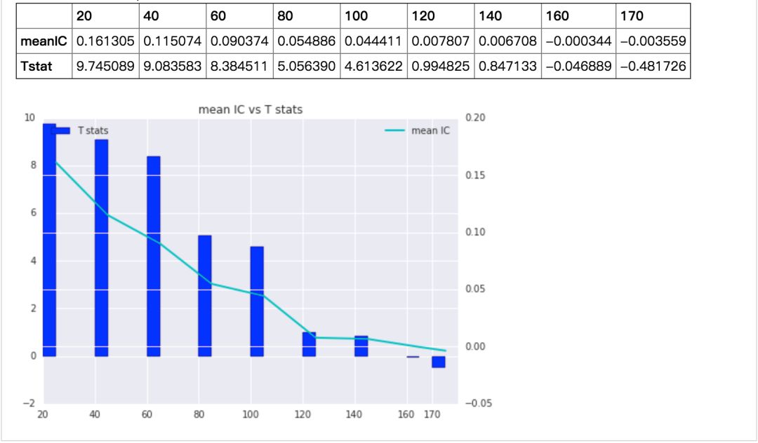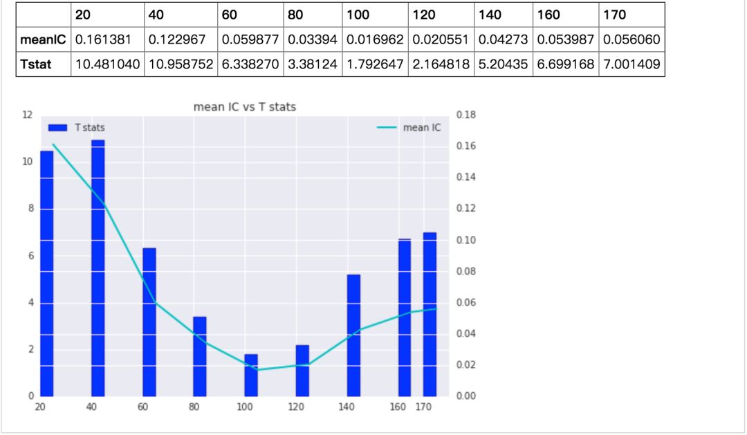 统计因子在不同预测周期下的收益率均值、收益率IR均值的方式,测试单因子有效周期;