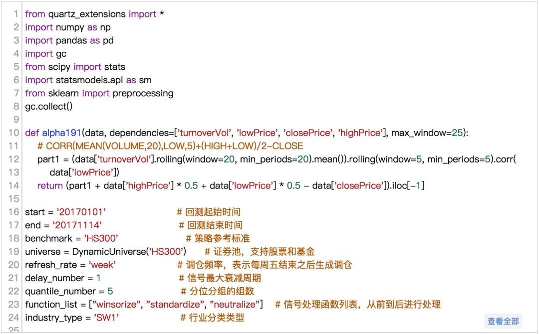 我们把191个信号计算的代码放在评论栏,大家可以复制到自己类库使用。
