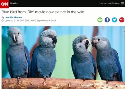 但晚了。最近,小蓝金刚鹦鹉(Cyanopsitta spixii )被宣布野外灭绝。