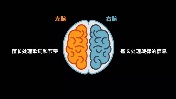 根据最新的科学研究的结果显示,我们的左脑可能更加擅长处理比较短的音节、节奏,还有就是比较擅长处理一些非音乐化的信息,比如词汇。但是我们的右脑可能就会比较擅长处理一些长一点的,旋律化的,音乐化的信息,所以唱歌是一个非常复杂的运动,也是一个全脑性的活动。