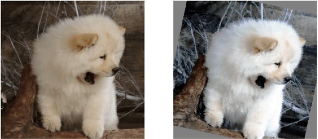 左:来自ImageNet数据集的原始图像;右:由AutoAugment转换的相同图像(对比度+旋转)