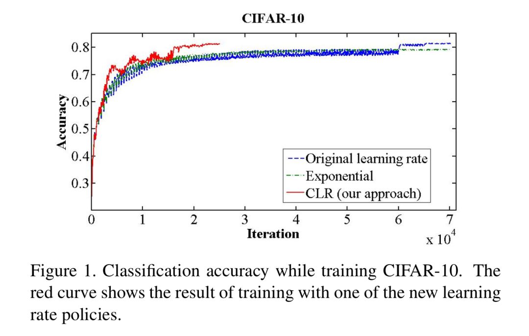 下面论文中的数据表明:0.1的学习率表现更好,能达到最高的准确性,并且在衰减速度上比原始的学习率和指数级的学习率快了两倍。