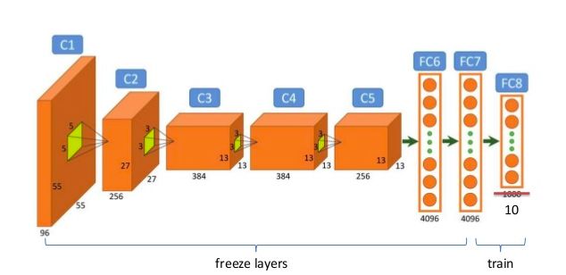 下图显示了一个微调过程的示例图,它将最终层输出从1000维调成了10维: