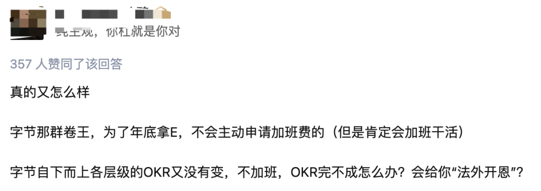 「真的又怎么样?字节那群卷王,为了年底拿E,不会主动申请加班费的(但是肯定会加班干活)