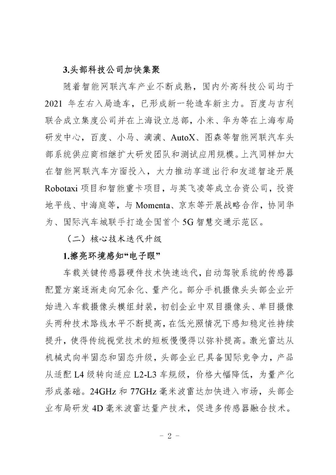 2021 年,国内智能网联汽车关键技术不断突破,部分自动 驾驶汽车迅速进入消费市场,高度自动驾驶汽车也在开放道路实 现常态化示范运营,并成功进入商业化运营前夜,智能网联汽车 整体呈现强劲增速发展势头。上海顺应数字科技革命和产业变革 趋势,坚决落实国家交通强国和人工智能发展战略,推进科技创 新中心和国际航运中心建设,积极推进智能网联汽车创新发展和 示范应用。