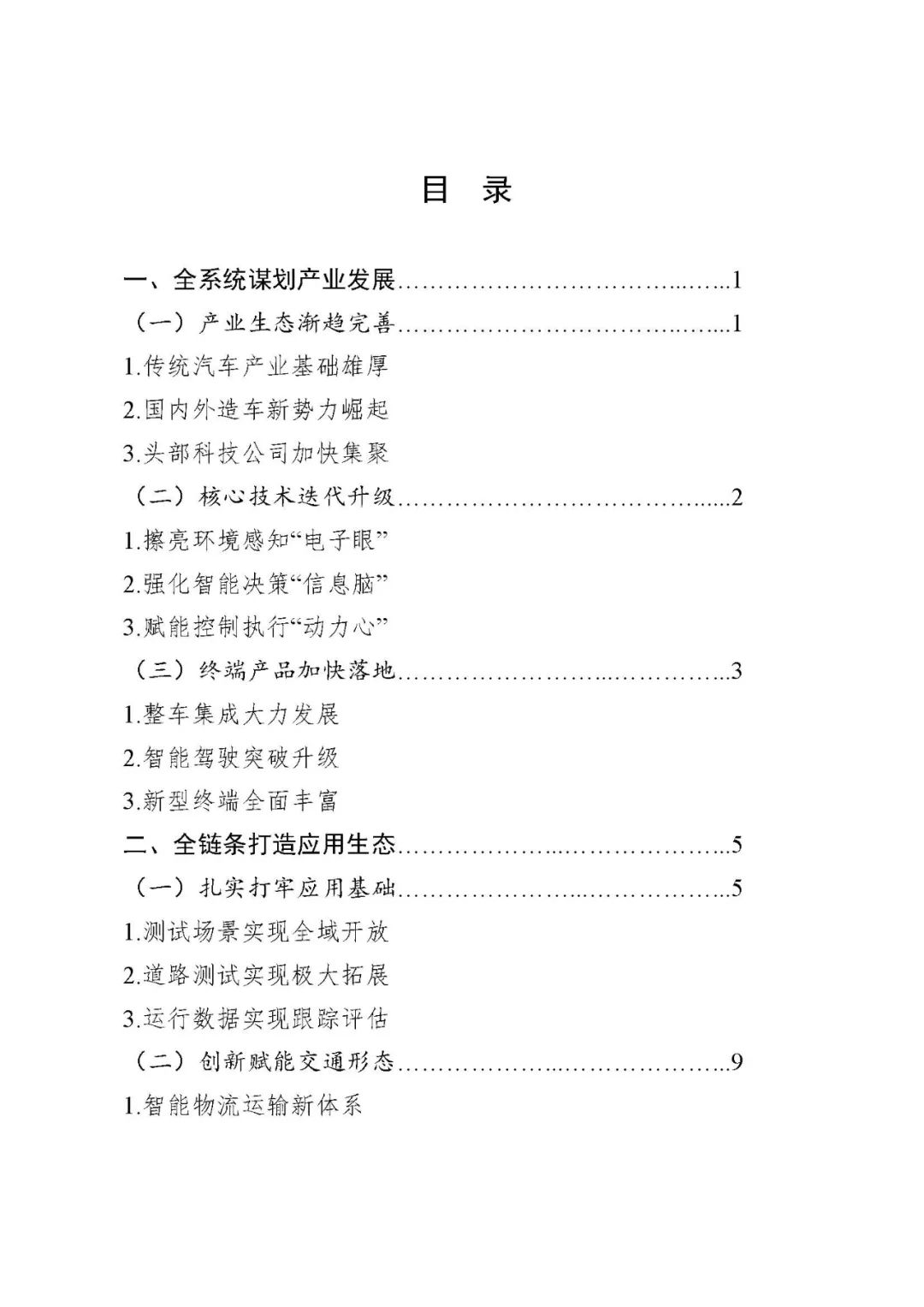 随着互联网、大数据、云计算、人工智能、5G 通信等科学 技术的加速创新,数字化转型正日益融入城市经济社会发展的各 领域和全过程,已成为重组全球要素资源、重塑全球经济结构、 重构全球竞争格局的关键力量。以智能网联汽车为驱动的数字经 济正成为世界各国争相发展的重点领域,发达国家都在全力抢占 智能网联汽车产业战略制高点,加快争夺制定自动驾驶法规、标 准话语权,力求赢得发展先机,大规模推进智能网联汽车道路测 试与示范应用。国家部委及各省市纷纷出台一系列发展规划、政 策法规和技术标准规范,制定促进智能网联汽车发展政策和自动 驾驶技术应用的指导意见,争取地方立法突破、持续加大政策供 给、积极探索商业落地。
