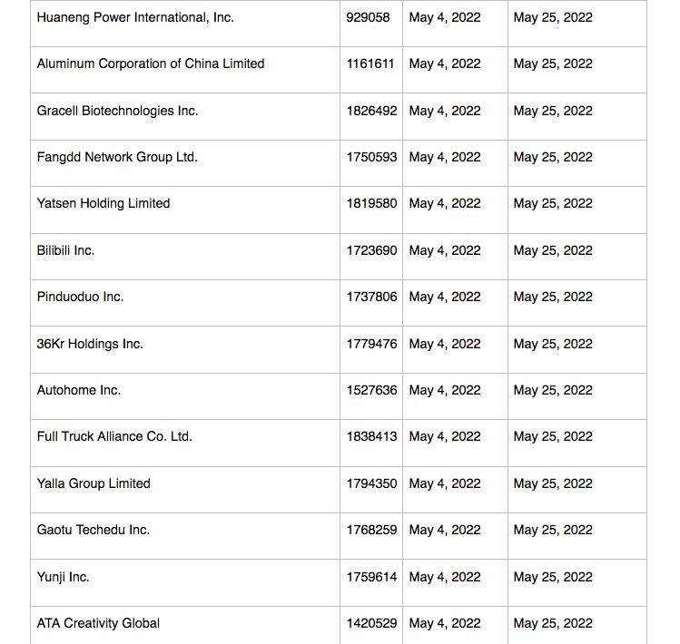 而一旦被列入“确定摘牌名单”,根据SEC此前公布的《外国公司问责法》,公司需要在三年内提交SEC需要的文件。如果“确定摘牌名单”的公司没有提交或提交的文件不符合SEC要求,理论上将会在披露年报后立即退市。