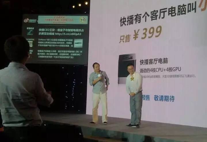 也是在那天下午,在另一个场地的另一场发布会上,搜狗的另一个绯闻男友360公司CEO周鸿祎,在为快播新推出的小方客厅电脑站台,他语带讥讽地祝愿快播盒子早日打败小米盒子。
