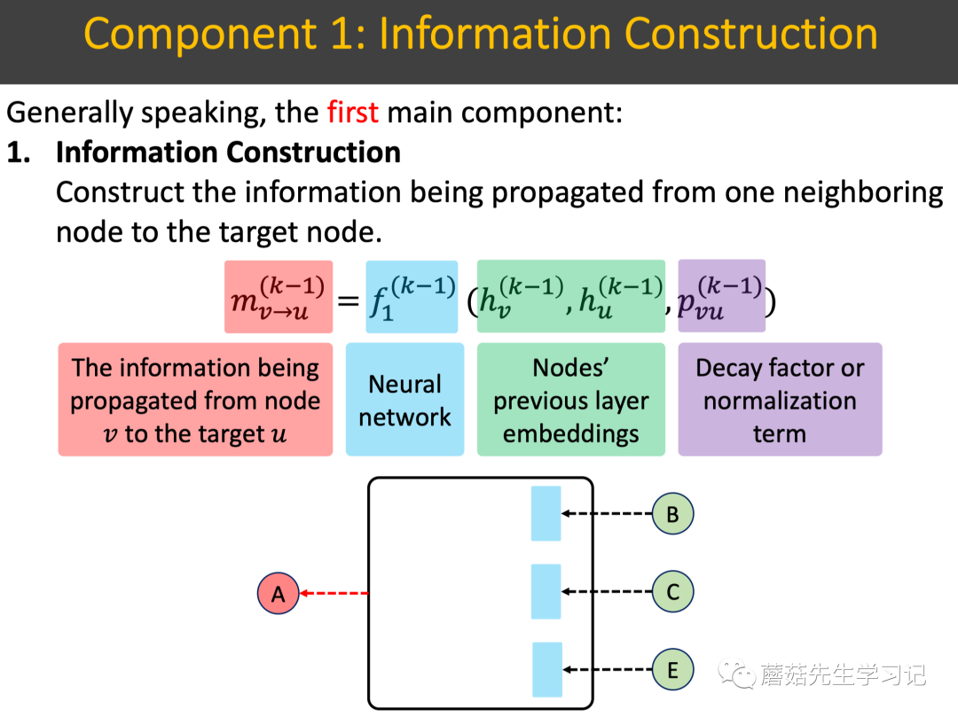 信息构建组件:负责构建从邻域结点到目标结点「要传递」的信息;