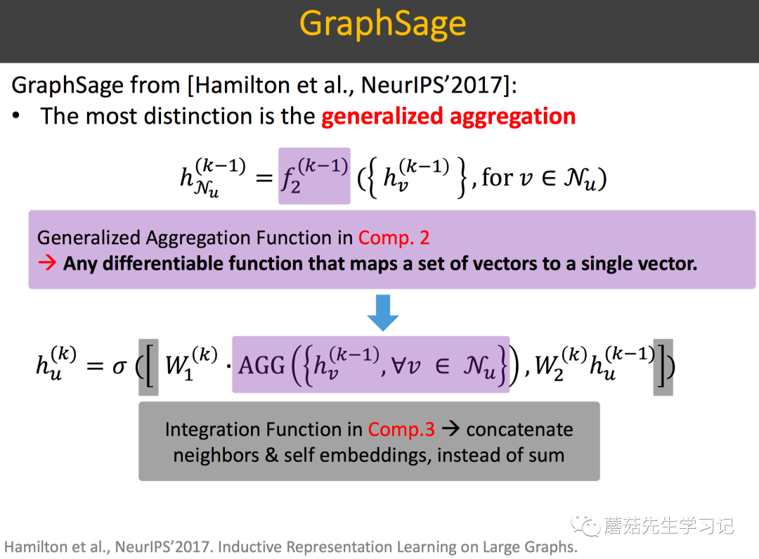 其中Agg汇聚函数在GraphSAGE中有多种形式。