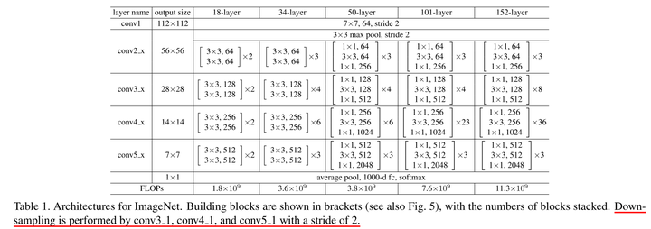 上图描述了ResNet多个版本的具体结构,本文描述的“ResNet50”中的50指有50个层。和上图一样,本图描述的ResNet也分为5个阶段。