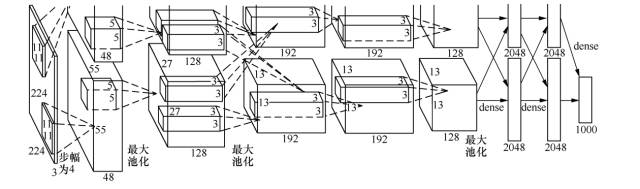 AlexNet 由5个卷积层、5个池化层、3个全连接层,大约5000万个可调参数组成。最后一个全连接层的输出被送到一个1000维的 softmax 层,产生一个覆盖1000类标记的分布。