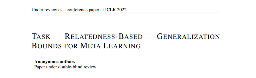 论文题目:Task Relatedness-Based Generalization Bounds for Meta Learning