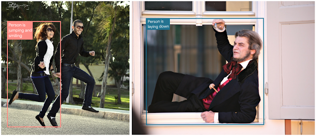 自计算机视觉诞生以来,识别图像中的人像便一直是其关注重心,对于许多应用程序而言,理解这些人的行为至关重要。这就是为什么Open Images V6 中还包含了 250 万个与人类作出的独立动作(如“跳跃”、“微笑”或“躺下”)有关的标注。