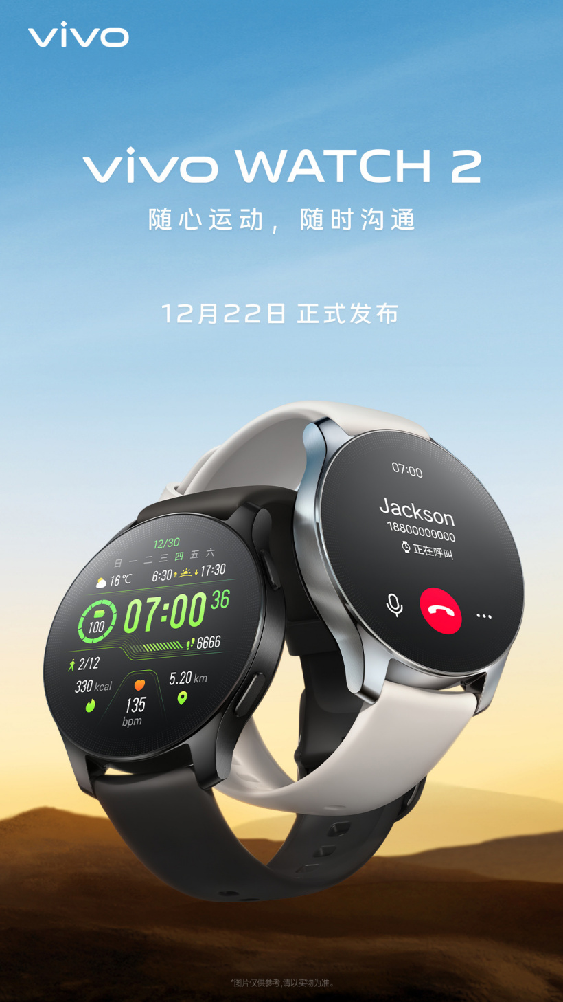 vivo 官方今日公布了 12 月 22 日发布的 vivo WATCH 2 的外观海报,从预热海报可看出,vivo WATCH 2 采用的是圆形表盘设计,表盘右侧安置两枚矩形按键,并提供黑色和白色两种表带选择。配置方面,据悉 vivo WATCH 2 或采用 OLED 屏幕,内置 501 mAh 电池,可支持 7 天超长续航独立通信。此外还搭载了独立 eUICC 芯片,可通过 eSIM 实现独立连接蜂窝网络功能。