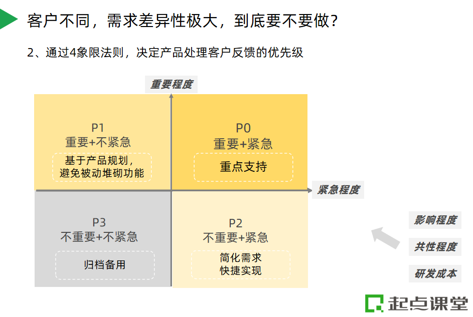 这个部分,老师将会从产品价值、经营战略、产品战略等维度带大家梳理客户需求管理机制保证。并分享一套4象限法则让大家做好产品需求的评估。