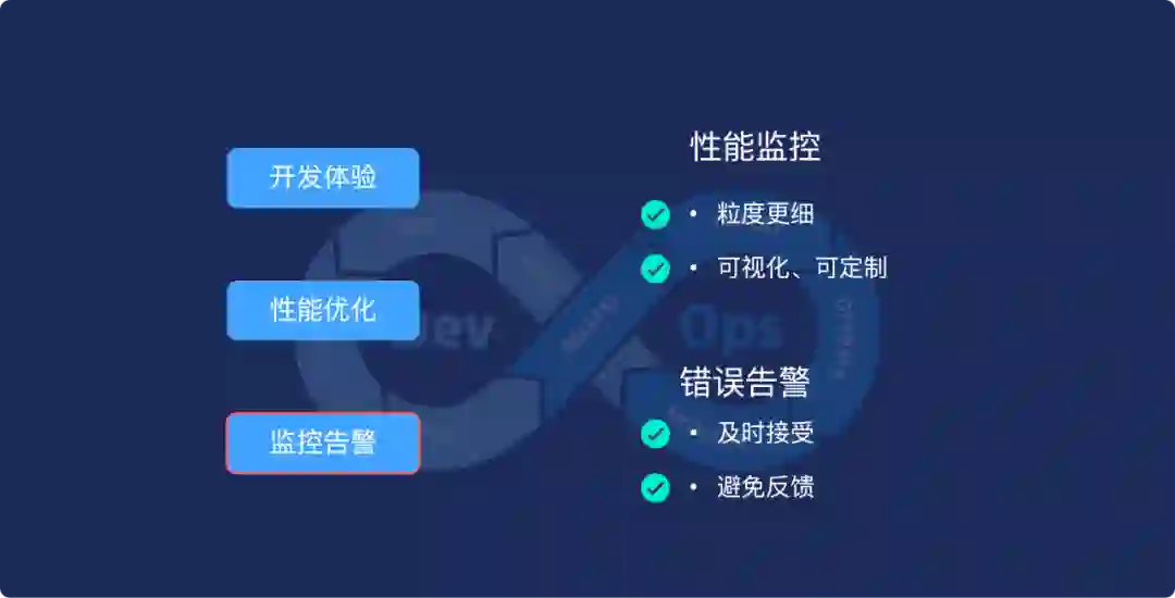 在发布之后,通过完善监控告警,将发布质量做到可视化的体现,并能够对出现的问题得到及时的接收和感知,减少用户的反馈。