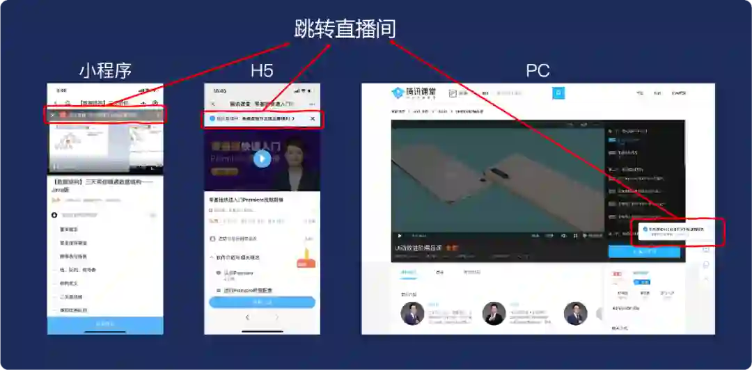 这里从一个实际场景出发,我们之前有这样一个需求:产品希望在各端的课程详情页有一个提示当前此机构正在直播的课程,可以引导用户跳转到直播间听老师讲解课程的细节。