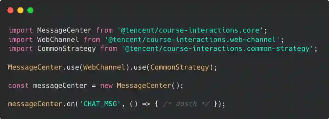 为了让这个核心能力能够达到跨端跨业务的复用效果,我们团队开发了一个直播互动的 SDK,对外抛出简单的 API,内部设计了接口层、适配层、通道层、策略层,结构非常清晰,使用起来也很方便,初始化后开发只需要监听或请求对应的命令字即可,无需关心内部的转化,并且能够利用 ts 的类型推断能力直接拿到通道返回的数据类型。