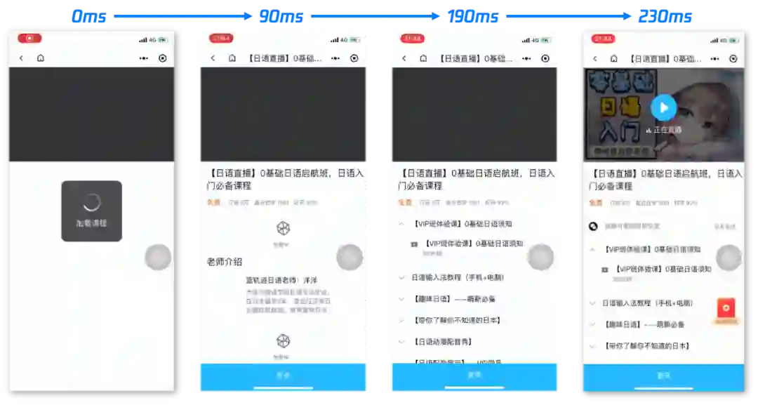 通过分步渲染的方式,可以将我们首屏渲染的起始时间从 230ms 提前到 90ms,达到减少用户等待焦虑,提升用户体验的效果。