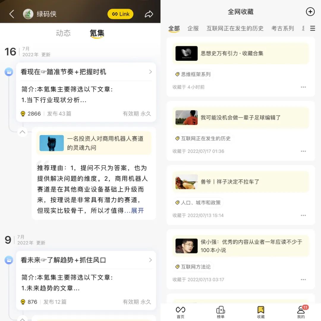 同时,为了让内容更加结构化,翎氪做了两个事情。第一个是氪集,这是主理人为消费者打造的阅读头条;第二个全网收藏夹,这是用户为自己打造的阅读头条。在收藏夹里,用户可以自定义标签,相当于为自己创建了信息流。