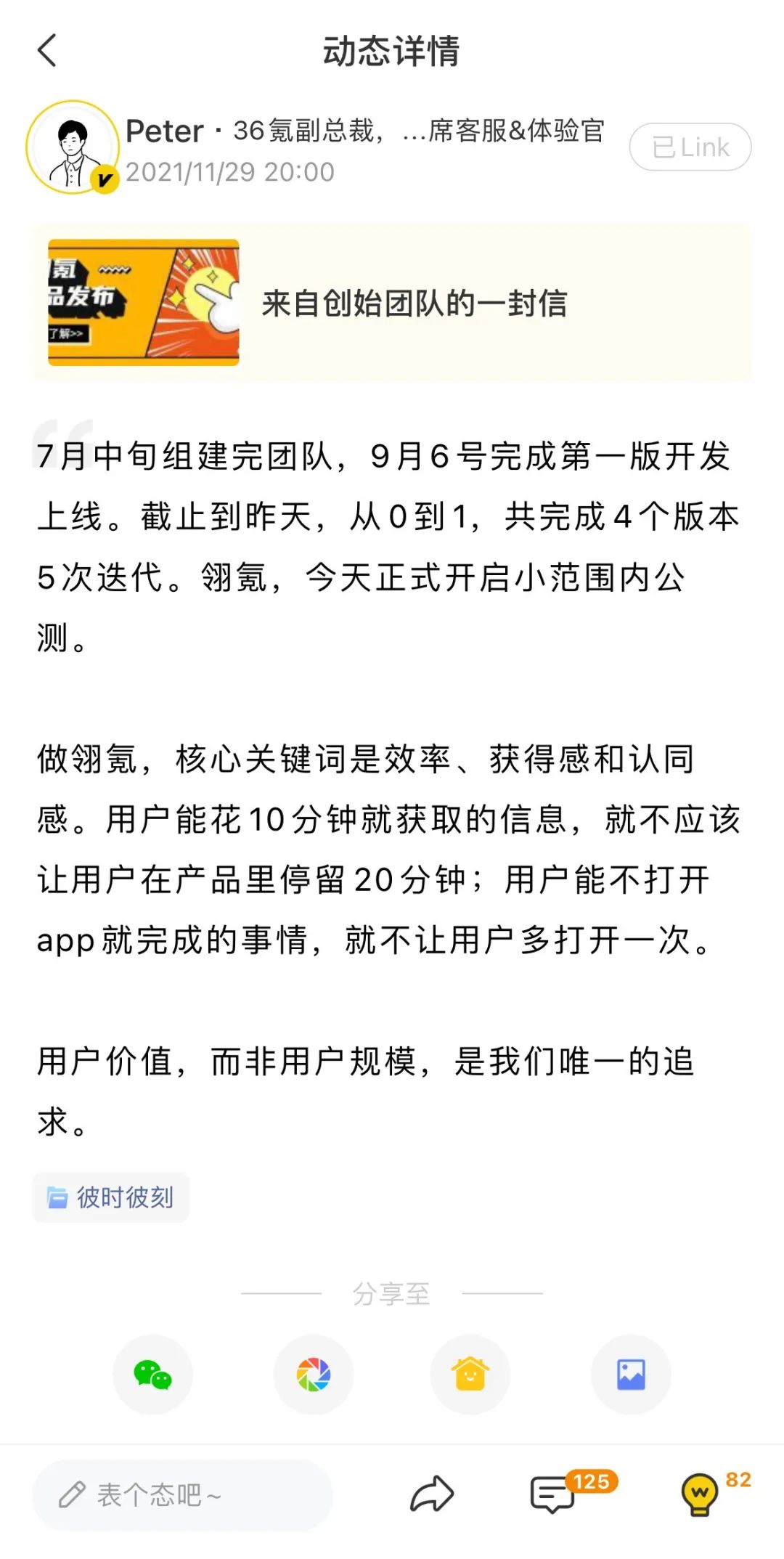 看到这样的变化,王坤一直想要做一款真正能够帮助用户节约时间、高效的内容获取工具和社区。幸运的是,王坤与36氪CEO冯大刚的想法不谋而合。一款以人为核心的内容社区翎氪,应运而生。