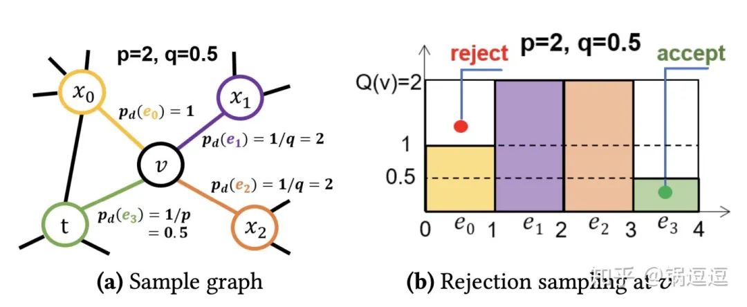 当采样概率小于Tmin时,不管当前采样节点和上一跳节点的关系如何,都可以直接接受该节点(图(c)),算是一种预处理的trick。