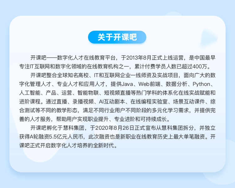 那么,如何掌握基于情感词典分析方法?情感分析中的GPT 系列和 BERT 类模型又是如何使用?别急,今天,给大家推荐一份由 开课吧 提供赞助的《NLP情感分析进阶必备大礼包》资料。