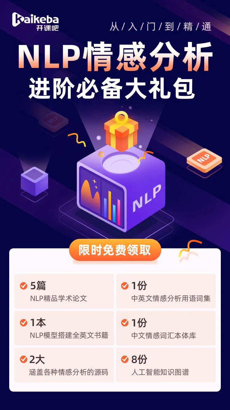 包含了情感分析、词向量、文本挖掘、Pipeline、Word2Vec、Transformer、BERT、 GPT等核心知识 。满足你在学习NLP情感分析的各种需求,成为NLP算法工程师,这个资料是你最好的选择。本号主为大家争取到了免费名额(前150名,还可以获得开课吧NLP付费课程的报名优惠资格)。