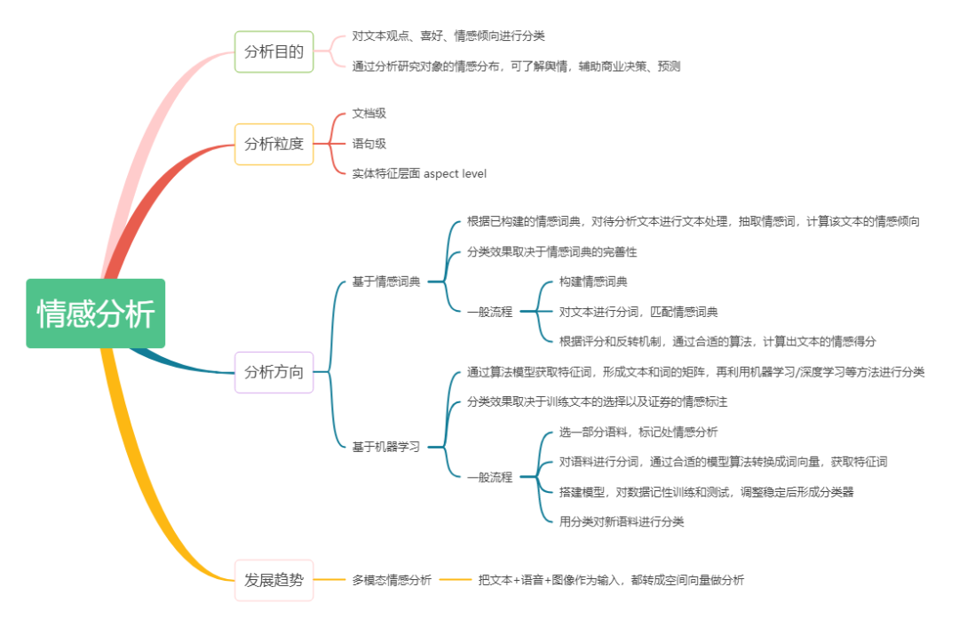 前者需要用到标注好的情感词典;后者则需要大量的人工标注的语料作为训练集,通过提取文本特征,构建分类器来实现情感的分类。