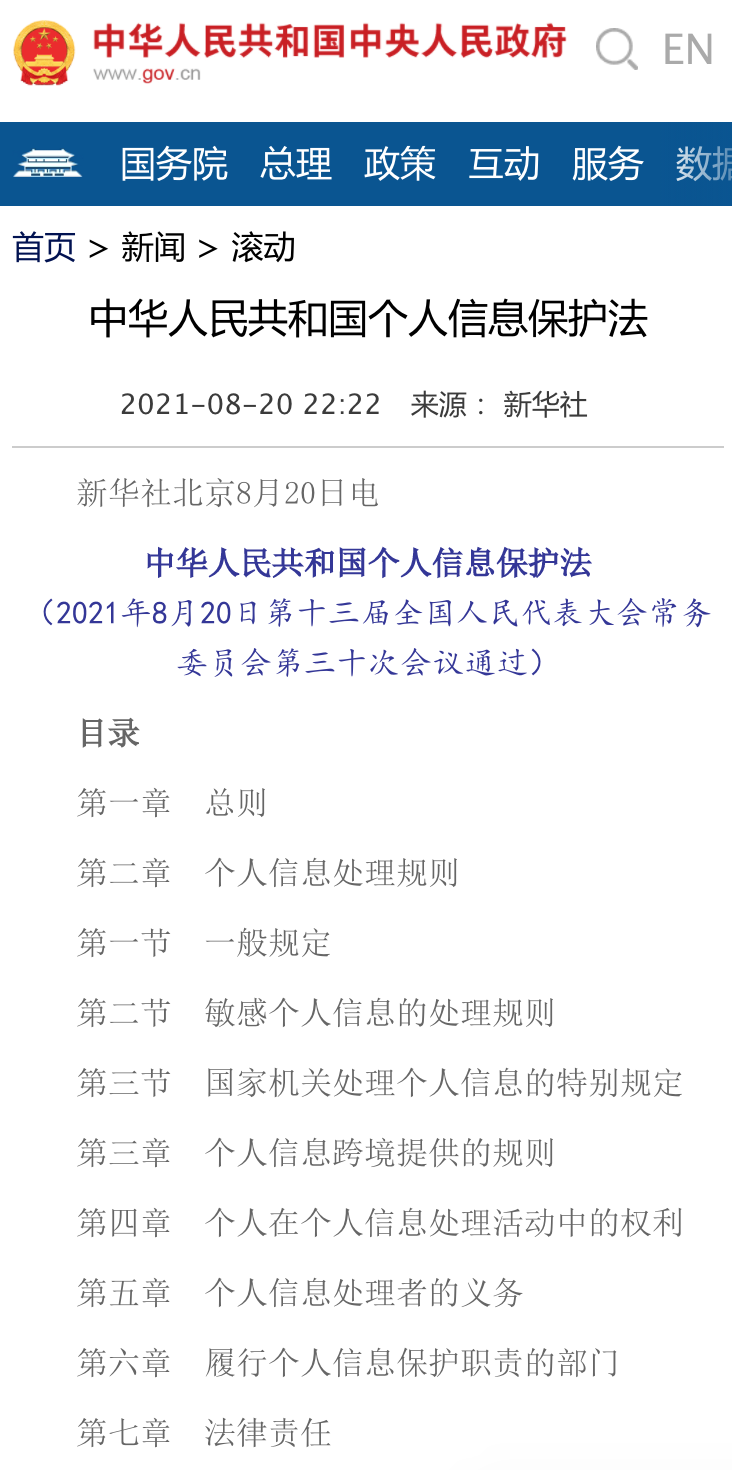 这部法律于2021年8月20日通过,于2021年11月1日起施行。