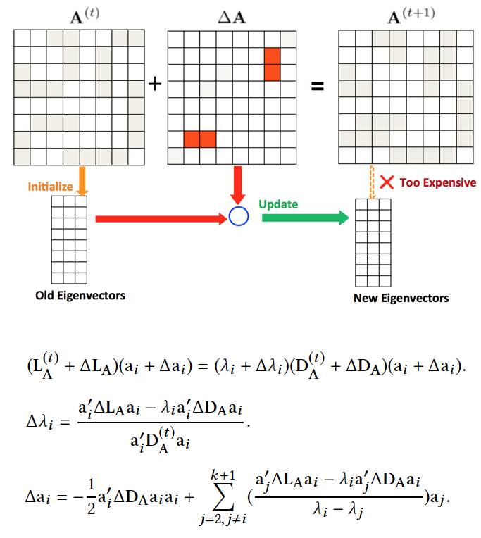 利用矩阵摄动理论(matrix perturbation theory)增量在线更新embedding results。