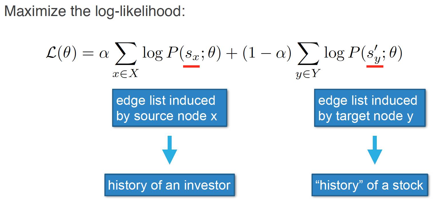 解读:网络构成中,边上带了很丰富的交互信息,如何同时利用这部分信息进行节点Embedding。比如“用户”-“股票“之间的交易网络,边上带有丰富的“时间、价格、数量”特征,如何结合这些信息和网络结构,得到“用户”、“股票”的embedding向量,进而用于预测“用户”后续会买哪只股票。