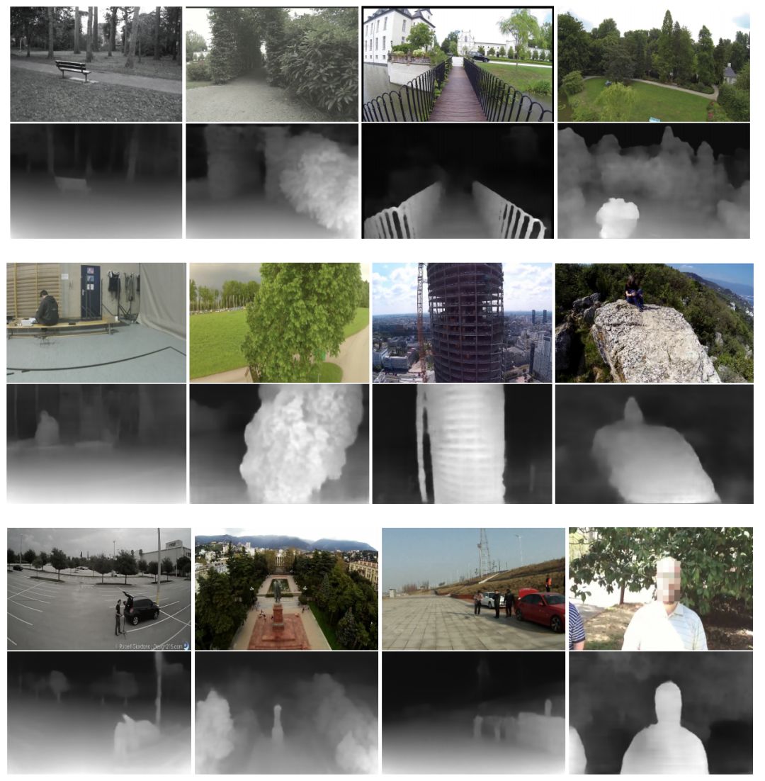 来自YouTube8M收集的图像和学习的视差图。