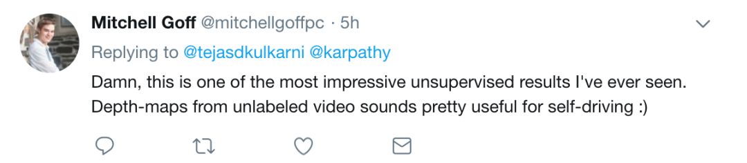 推特网友对此不吝赞美:“这是我见过的最令人印象深刻的无监督结果之一。来自未标记视频的深度图对于自动驾驶非常有用:)“